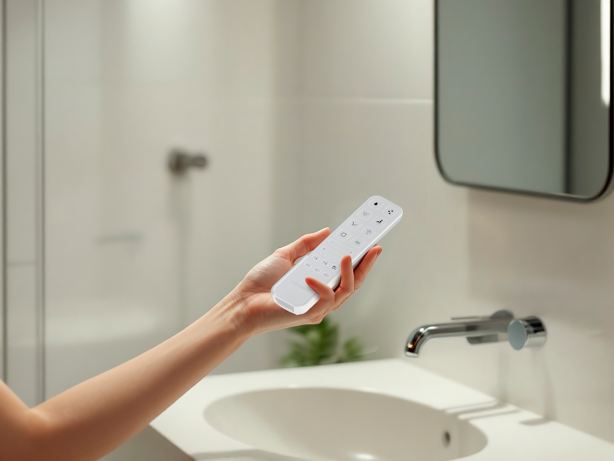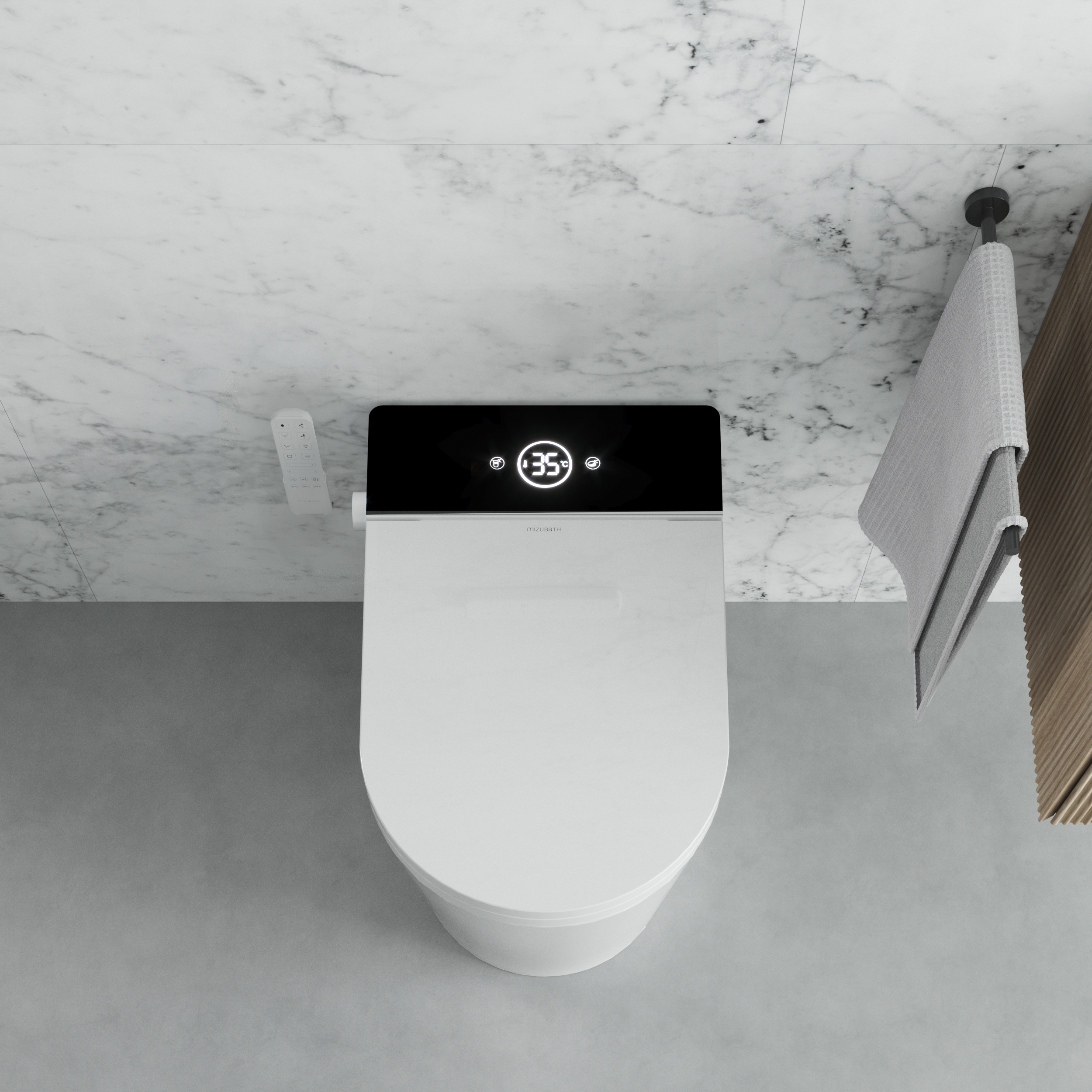 El mando permite manejas todas las funciones del inodoro cómodamente: ajustes de temperaturas e intensidades, posición de la cánula de lavado, seleccionar entre los diferentes tipos de masaje e incluso descargar el inodoro directamente.