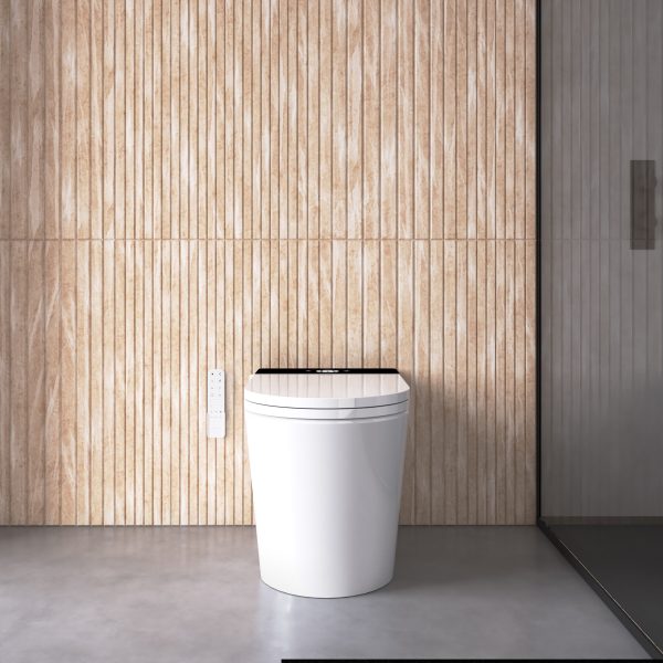 El inodoro se puede descargar directamente desde el mando a distancia para una mayor comodidad en los inodoros con tanque incorporado. Dependiendo del modelo dispone de descarga completa o de 1/2 descarga (disponible Julio 2023).
