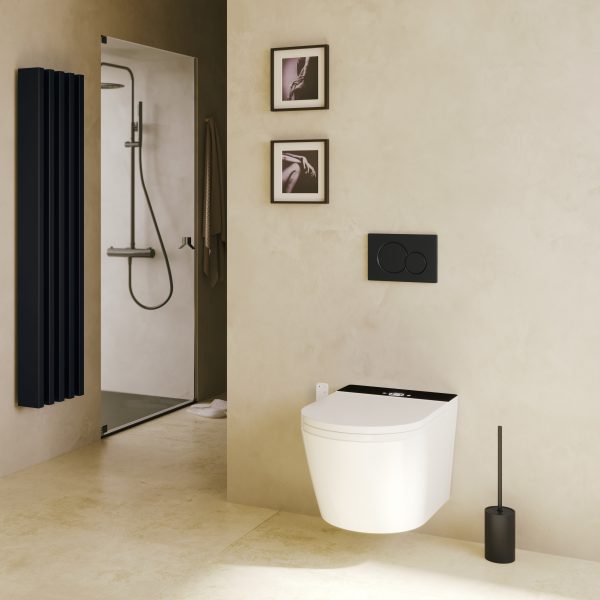 Más ligero que su versión a suelo, este inodoro suspendido de la serie Rada con display en negro es diseño y tecnología a partes iguales. Es nuestro modelo básico que se define por sus líneas suaves, orgánicas y dinámicas.