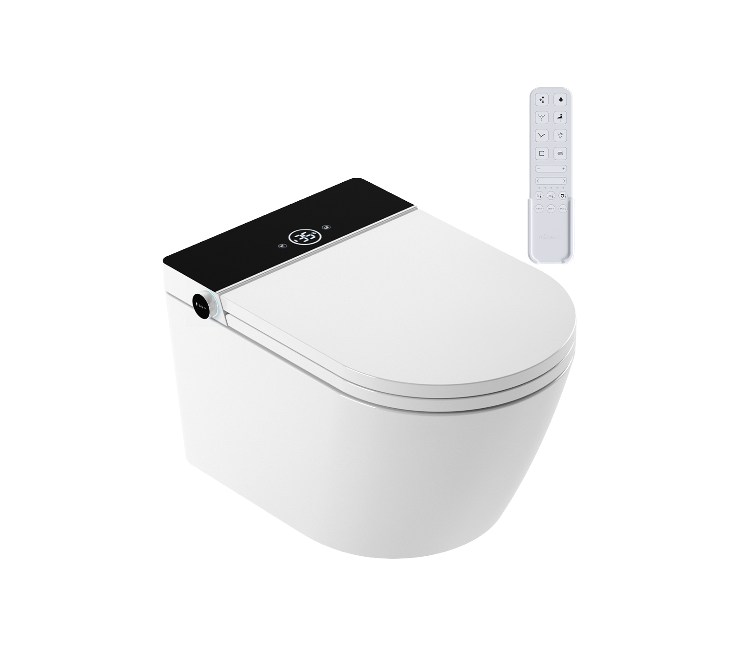 El mando permite manejar todas las funciones del inodoro cómodamente: ajustes de temperaturas e intensidades, posición de la cánula de lavado, seleccionar entre los diferentes tipos de masaje e incluso descargar el inodoro directamente.